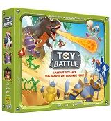 Sur terre, en mer, dans les nuages et même dans l’espace, les batailles se multiplient chez les jouets : ils ont besoin de vous ! Manœuvrez vos troupes et utilisez astucieusement leurs effets pour prendre l’avantage sur votre adversaire. Votre mission ? Capturer le quartier général ennemi ou remporter un maximum de médailles. Préparez-vous à un affrontement sans pitié ! Vos troupes comptent sur votre talent tactique pour les mener à la victoire ! Votre mission ? Être le premier à atteindre le quartier général ennemi ou contrôler plus de territoires que votre adversaire. Dans « Toy Battle », à votre tour, vous pouvez soit piocher deux troupes, soit placer une troupe sur le plateau et appliquer son effet. Une troupe peut être placée sur : Une base vide, une base que vous contrôlez, une base ennemie avec une troupe de valeur inférieure ou le quartier général adverse. Toutefois, vous ne pouvez poser une troupe que sur une base reliée à votre propre quartier général par une chaîne ininterrompue de bases occupées par vos troupes. Si vous entourez complètement une région avec vos bases, vous remportez les médailles qu’elle contient (ces médailles restent acquises même si l’ennemi capture une base par la suite). La partie se termine dès qu’un joueur occupe le quartier général adverse ou remporte le nombre de médailles requis. Si un joueur ne peut plus ni piocher ni poser de troupe, la partie s’arrête et celui qui possède le plus de médailles l’emporte. Affrontez-vous sur les 8 champs de bataille différents pour varier les stratégies !