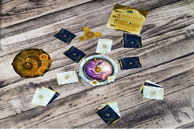 Avec des jeux comme « Dixit » ou « Mysterium », l’éditeur Libellud est devenu l’une des références en matière de jeux de société que ce soit dans le coopératif et la manière de pouvoir débattre ensemble et d’arriver à une conclusion favorable, ou dans l’imaginaire et la façon dont on peut faire deviner une image par le biais d’indices plus ou moins lisibles. Avec « Take Time », l’éditeur nous emmène dans une nouvelle aventure coopérative. Cette fois-ci, le jeu créé par Alexi Piovesan et Julien Prothière (Kosmopoli :t), nous propose un jeu de cartes et d’horloges où les joueurs doivent, dans un premier temps établir une stratégie (sans se donner d’informations trop précises de ce qu’ils ont en main !) afin de pouvoir poser l’ensemble des cartes en respectant les règles imposées par l’horloge. Puis sans se parler, chacun devra poser ses cartes, faces cachées, dans le sens des aiguilles d’une montre à raison d’une par joueur, et n’auront pour les aider qu’un nombre limité, défini par les engrenages en leur possession, de cartes à poser faces visibles. Une fois cela fait, ils révèleront chacun des groupes de cartes et vérifieront s’ils ont réussi la mission : La somme des cartes doit toujours être égale ou supérieure à la précédente, en commençant par la case de départ définie par l’aiguille et, bien sûr, ensuite répondre aux restrictions dessinées sur le contour de l’horloge.