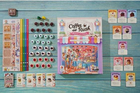Il n’en demeure pas moins que « Coffee Rush » est un jeu soigné dans son esthétisme, on adore, par exemple, les petites tasses et leurs espaces de rangement dans la boite de jeu, ou encore les ingrédients qui montre qu’un véritable soin fut apporté à la fabrication de ce jeu, pour offrir un véritable plaisir de jeu pour les participants. La règle est facilement assimilable, et la partie d’une durée approximative de 30 minutes se déroule avec beaucoup de fluidité et de dynamisme qui rendent les parties passionnantes et divertissantes. Et « Coffee Rush C’est du gâteau » permet d’apporter une nouvelle dynamique de jeu avec un soin toujours autant apporté aux éléments de jeu, comme les gâteaux par exemple et les cartes.