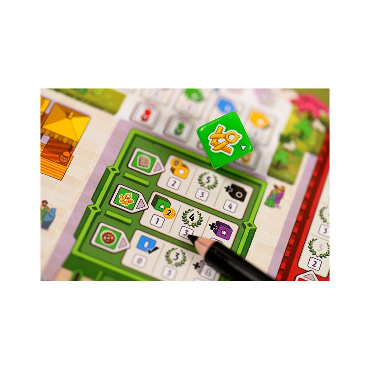 « 7 Wonders Dice » est la version roll & write du célèbre jeu « 7 Wonders ». Construisez une merveille, faites des progrès scientifiques, développez le commerce, gérez vos ressources et votre réserve d'or. Dans « 7 Wonders Dice », construisez une merveille qui défie le temps, faites des progrès scientifiques, développez le commerce, gérez vos ressources et votre réserve d'or avec prudence, tout en gardant un œil sur les villes voisines, car les ignorer se paie très cher ! Grâce à un système de choix simultané et des actions variées, ce roll & write offre des parties dynamiques, pleines de dilemmes stratégiques. N’oubliez pas de surveiller les cités voisines ! Une partie se déroule en plusieurs tours au cours desquels vous utilisez des dés pour construire votre ville. À la fin de la partie, comptez tous vos points pour savoir qui a le score le plus élevé.