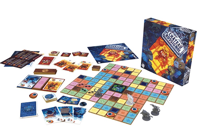 Les auteurs Jérémy Fraile (Unlock Mythic Adventures), Bruno Cathala (Le Seigneur des Anneaux – Duel Pour la Terre du Milieu) et Eliette Fraile Guilty – Fontainebleau 1543) nous proposent une nouvelle création venue tout droit de leurs cerveaux de créateurs de jeux malades. Il s’agit de « Château Rossignol », un jeu pour deux joueurs, dans lequel des Ninjas vont tenter de voler des reliques alors qu’un Samouraï les pourchasse. Première constatation : La boite Thermoformée offre un rangement optimal pour les figurines des Ninjas et du Samouraï, ainsi que pour les cartes, les jetons et tous les éléments du plateau. Là nous comprenons tout de suite que les auteurs ont soigné leur et que l’on va s’amuser dans un jeu où il faudra faire preuve de tactique et d’anticipation pour attraper les Ninjas ou pour échapper au Samouraï.