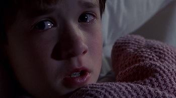 Et puis, bien sûr, il y a les prestations de Bruce Willis et Haley Joel Osment qui sont absolument remarquable. Willis se laisse aller sur le terrain de l’émotion, de la douceur, à travers le parcours de son personnage de psy touché par une agression et qui depuis semble ne plus pourvoir dialoguer avec sa femme. Et Osment, un gamin de dix ans, au moment du tournage et dont la prestation est à couper le souffle. D’une maturité incroyable et surtout d’une justesse déchirante, il sait parfaitement jouer sur tous les tableaux. C’est LA révélation de ce film tout autant que le réalisateur.