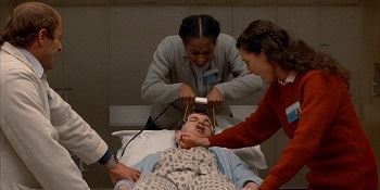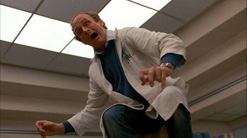Et c’est le cas, car « Rêves Sanglants » surprend par le ton qu’il utilise et certaines scènes particulièrement réussies. Sur un scénario de Thomas Baum, dont la plupart des films sont inédits en France, Roger Christian va signer une mise en scène précise et intéressante, malgré quelques maladresses, mais très peu finalement, au regard de la foule de bonnes idées qu’il a pu avoir pour rendre son film à petit budget inventif. Ici, donc, nous suivons le parcours d’un homme dont on ignore le prénom, qui après une tentative de suicide va se retrouver enfermé dans un hôpital psychiatrique. Rien de bien original me direz-vous ? Sauf que à son contact, les médecins et les patients commencent à avoir des visions horrifiques. S’en suit une course contre la montre afin de comprendre qui est ce garçon et d’où viennent ces hallucinations.