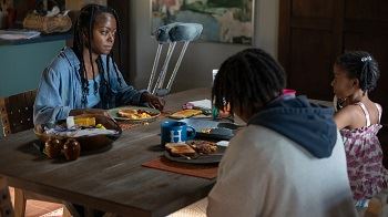 L'actrice Danielle Deadwyler (Emmett Till), offre une composition remarquable tout en maîtrise et tout en nuances qui permet de la voir passer d'un état psychologique faible, suite à l’accident, à une folie dévastatrice dont on ne perçoit pas forcément toutes les facettes et c'est bien ce qui est le plus intéressant dans son jeu. L'actrice est captée par la caméra quasiment en majorité en gros plan sur son visage ce qui lui permet de pouvoir montrer toutes l’étendue de son talent, l'incroyable palette de sentiments et la manière dont elle maîtrise chacun d'eux. Face à elle, le jeune comédien Peyton Jackson (The Résident) ne se laisse pas impressionner et parvient également à apporter son lot de nuances dans un personnage de fils qui est à la fois complexe de par son âge et de par sa volonté de pouvoir sortir sa mère de la catatonie dans laquelle elle s'est enfermée depuis l'accident. L'arrivée de la dame en noir va créer des tensions mais surtout réveiller les peurs et les angoisses de ces enfants face à une mère qui commence à perdre son propre contrôle.