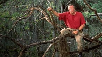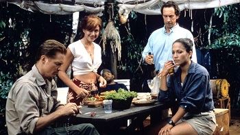Et puis après, comme autre signe du désastre annoncé, le réalisateur Luis Llosa (Sniper, tireur d’Elite), dont la carrière a surtout brillé sur les étagères des vidéos clubs ou dans les fonds de rayon des plateformes de streaming. Et le pire dans tout ça c’est que le scénario, parce qu’il y en a un, a été écrit par trois scénaristes : Hans Bauer (Titan A.E), Jim Cash (Top Gun) et Jack Epps Jr. (Turner et Hooch). Tout étant parti d’une idée de créer une histoire de monstre énorme qui tuerais des humains en pleine forêt amazonienne. Les Singes géants et moins géants étant déjà pris, ainsi que les requins, il ne restait que les Crocos ou les Serpent. Et c’est donc l’Anaconda qui se retrouva, bien innocemment au cœur de cette intrigue cousue de fil blanc, ou rien ne parait vraiment vraisemblable et où chaque mort peut être prédite dès le début du film.