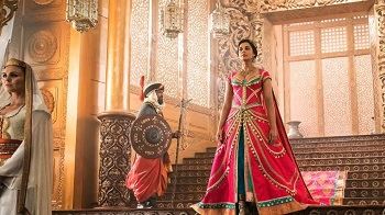 Côté mise en scène également, si Guy Ritchie s’est révélé plus inventif, ici il déçoit un peu par une mise en scène trop académique parfois dans le traitement de l’histoire avec une caméra qui tourne autour d’un dialogue amoureux, pas forcément très à l’aise, ou encore lors de la confrontation finale avec Jafar. Guy Ritchie semble avoir laissé trop de liberté aux acteurs, qui perdent ainsi leurs repères et ne sont pas forcément très concluant. En revanche, le réalisateur sait comme personne mettre de l’énergie dans le film. Ainsi la course d’Aladdin sur « One Jump (Je Vole) » est absolument remarquable avec des péripéties de l’acteur Mena Massoud (Jack Ryan) impressionnantes autant que surprenantes. La scène est à couper le souffle, car le réalisateur utilise les ralentis et les accélérés pour donner un aspect film muet avec une subtilité renversante. Tout comme les scènes musicales à l’instar du bal dans le palais ou le final qui semblent tout droit sortis d’une production Bollywood, c’est beau, c’est coloré c’est enivrant pour ne pas dire enfiévrant. Et pour finir, il serait, bien sûr, injuste de ne pas parler de la chanson « Prince Ali » dont la mise en scène rivalise de somptuosité avec les plus grands péplums de l’âge d’or d’Hollywood. Avec plus de 250 danseurs et 200 figurants, la scène est impressionnante et emporte le public jusqu’à la dernière note, au point que l’on en redemande encore.