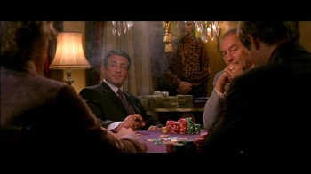 Si l’on pourrait penser, au premier abord, que le film va s’inscrire dans la veine des Joueurs de John Dahl, il n’en est rien puisque le métrage de Nieman va s’articuler autour du thème de l’arnaque (principalement dans le monde du poker), se réclamant du cinéma de David Mamet (sans jamais l’égaler). Durant une heure trente, nous allons suivre un trio d’arnaqueurs (Gabriel Byrne, Thandie Newton, Stuart Townsend) qui va chercher à escroquer une légende du milieu : Dean Stevens (Sylvester Stallone). Après des « entraînements » et quelques déconvenues (ils ont indirectement volé de l’argent appartenant à la mafia), les trois compères se retrouveront assis à une table de poker avec celui que l’on surnomme « The Dean », ceci avant le twist final, figure narrative quasiment imposée dans les films d’arnaque.