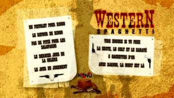 La collection (10 minutes) : Bandes annonces des films Un pistolet pour Ringo, Le retour de Ringo, Pas de pitié pour les salopards, Le dernier jour de la colère, Le jour du jugement, Tire encore si tu peux, La brute le colt et le karaté, Cinq gâchettes d’or, Avec Django la mort est là.