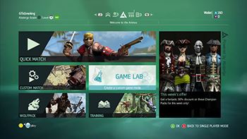 Côté multijoueur le jeu propose le GameLab mode entièrement personnalisable avec plus de 200 paramètres à la clé. On peut configurer une partie exactement comme on l'entend par exemple en favorisant la discrétion et en récompensant d'un plus grand nombre de points une action difficile à accomplir. Ou à l'inverse, inciter les joueurs à attaquer régulièrement.